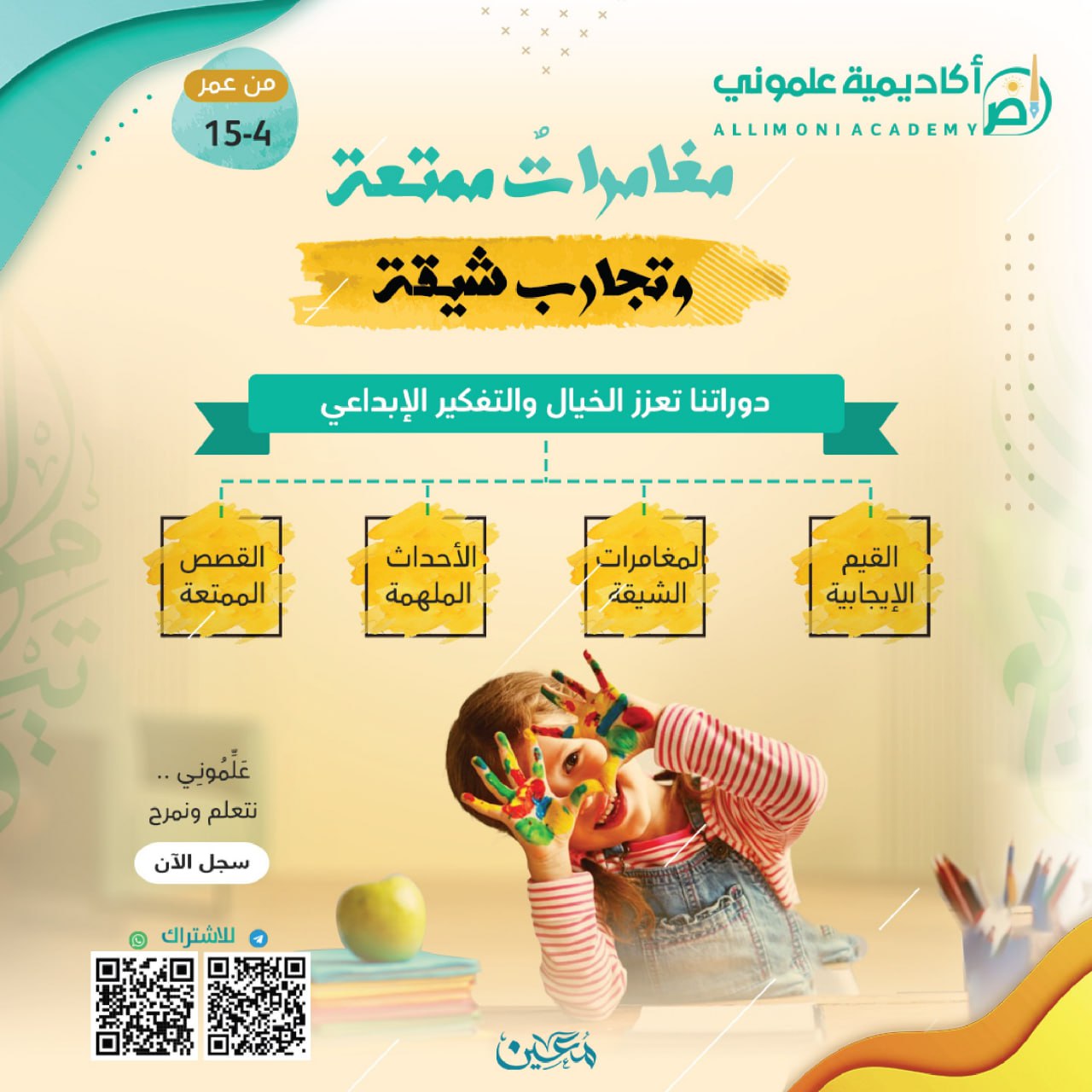 جميع دوراتنا تتناسب مع الأطفال من عمر أربع سنوات إلى 15 سنة.